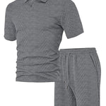Men's Summer New Figured Cloth Men's Casual Sports Thin Section Lapel Short Sleeve Suit