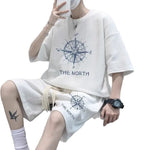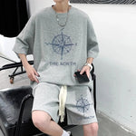 New Casual Sports suit Men's Summer Hong Kong Style Retro Trendy Brand Trendy Short-sleeved T-shirt for Teenagers Loose Shorts