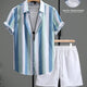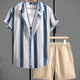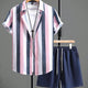 Simple Color Stripe 3D Print Hishiyin Hot Sale Summer Hawaiian Vacation Shirt Shorts suit
