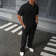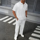 Summer Men's New Solid Color Jacquard Lapel Short Sleeve Trousers Two-Piece Suit
