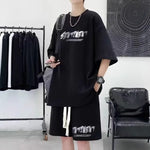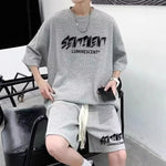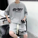 Waffles suit Boys Summer Youth Casual Sportswear with Handsome Shorts Men's Short-sleeved Two-piece Fashionable Suit