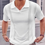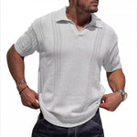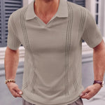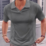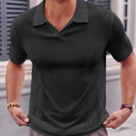 European And American Fashion Men's Knitted Polo Shirt Short Sleeve V-neck Hollow