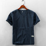 Linen Short-sleeved T-shirt Simplicity Casual Thin Pullover V-neck T-shirt Foreign Trade