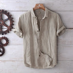 Men's Fashion Solid Color Retro Distressed Linen Shirt