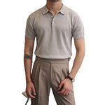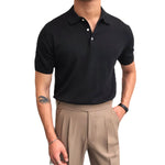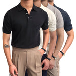 Men's Ice Silk Short Sleeve Knitted Knitwear Turn-down Collar Business Casual Loose Fit Polyester Winter T-shirt