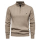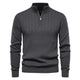 Men's Stand Collar Sweater Fashion Half-zipper Solid Color Striped Knit Sweater High Quality Slim Fit Top Clothing