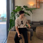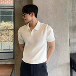 Summer New Light Maturity Men's New Style Knitted Casual Turn-down Collar Solid Color Short Sleeve T-shirt