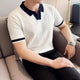 Summer Thin Ice Silk Knitted Short Sleeve Men Casual Match All High Sense Fashionable Striped Polyester Blend Loose Fit