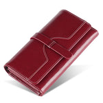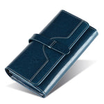 Genuine Leather Wallet Women's High-end Long Clutch Bag Oil Wax Leather Vintage Women's Bag Multifunctional RFID Anti-theft Brush Wallet