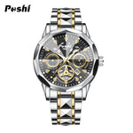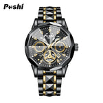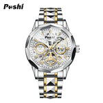 Poshi Men's Automatic Non-Mechanical Men's Watch Fashion Waterproof Quartz Calendar Men's Watch Steel Band Luminous Watch