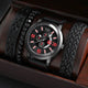 Quantity: 4 Pieces Color: Red,Blue,Black Occasion: Daily Material: Pu Leather,Alloy Classification: Watch,Bracelets Style: Sports Gender: Men'S Weight: 82g