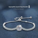 925 Sterling Silver Bracelet Women's Luxury Small Star Square Box Moissanite Bracelet Red Book Same Style Jewelry Accessories