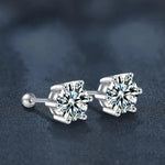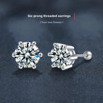 S925 Silver Thread Stud Earrings Classic Six Claw Moissanite Women's Ear Cuff Simple Elegance Hoop Earrings Jewelry