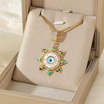 Pattern: Eye Plating Material: 18K Gold Plated Gold Plating Process: Water Plating,Vacuum Plating Design: Enamel,Inlay Occasion: Holiday,Daily Pendant Material: Copper,Brass Gender: Women's Chain Material: 201 Stainless Steel Inlay Material: Zircon Quantity: 1 Piece Material: 201...