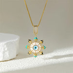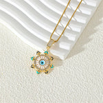 201 Stainless Steel Brass 18K Gold Plated Enamel Inlay Eye Zircon Pendant Necklace