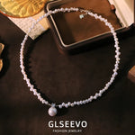 Handmade Natural Pearl Zircon Pendant Necklace Fresh Versatile High-End Beaded Clavicle Chain Geometric Design 925 Silver