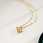 Ladies 14K Gold Plated Four Leaf Clover Pendant Necklace 925 Pure Silver Moissanite Bohemian Floral Print Simple Style Jewelry