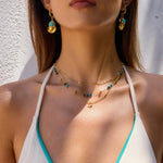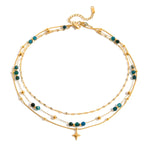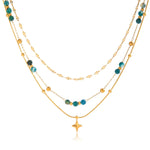 Ladies Sweet Romantic 18K Gold Stainless Steel Natural Stone Blue Pendant Lip Chain Four Star Necklace Three Layer Adjustable Length