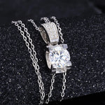 Chain Material: 925 sterling silver Pattern: Geometric Plating Material: White K Plated Inlay Material: Moissanite Quantity: 1 Piece Occasion: Daily Material: 925 Sterling Silver Pendant Material: 925 Sterling Silver Style: Elegant,Sweet Gender: Women's Weight: 3g...