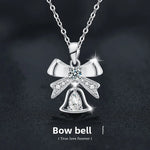 Original Butterfly Knot Bell Pendant Christmas Decoration Necklace S925 Pure Silver Moissanite Women's Fashion Jewelry Chain