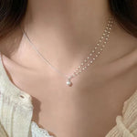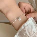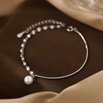 Pure Silver Pearl Necklace Bracelet Set Luxury Minimalist Women's Geometric Pattern Choker Chain Jewelry Accessory