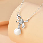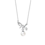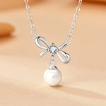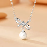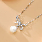 S925 Sterling Silver Butterfly Knot Necklace Women Elegant Sweet Imitation Pearl Zirconia Choker Fashionable Geometric Pattern