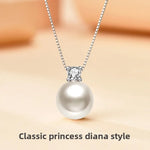 S925 Sterling Silver Classic Diana Style Necklace Women's New Simple Single Fake Pearl Clavicle Chain Jewelry Geometric Pattern