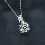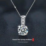 S925 Sterling Silver Classic Four Pronged Moissanite Necklace Fashionable Simple Design Style Jewelry