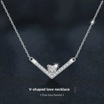 S925 Sterling Silver Heart Shaped Moissanite Pendant Necklace Women's Fashion Luxury V-Neck Clavicle Chain Jewelry Accessory