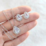 simple style water droplets copper plating inlay zircon women's earrings necklace