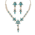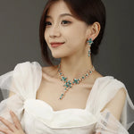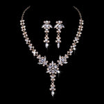 Pattern: Flower Inlay Material: Zircon Design: Inlay Quantity: Earrings + Necklace Occasion: Daily Material: Rhinestone,Copper Classification: Earrings,Necklace Style: Sweet Gender: Women'S Weight: 81g