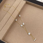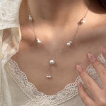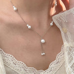 Tichi S925 Sterling Silver French Vintage Imitation Pearl Tassel Necklace Women Elegant High Fashion Pearl Trendy Clavicle Chain