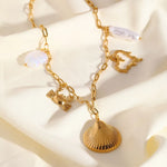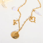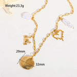 Wholesale Jewelry Cute Romantic Sweet Oval Shell 304 Stainless Steel Imitation Pearl 18K Gold Plated Multi Charms Paperclip Chain Multi Charms Necklace Necklace