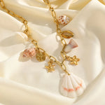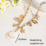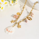 Wholesale Jewelry Glam Romantic Beach Starfish Shell 304 Stainless Steel 18K Gold Plated Cuban Link Chain Curb Chain Pendant Necklace Necklace
