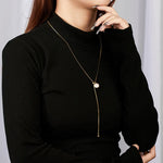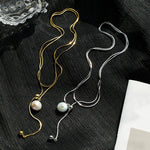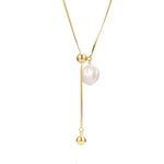 Women's Long 925 Sterling Silver Pearl Necklace Adjustable Baroque Irregular Sweater Chain Geometric Pattern Personalized Style