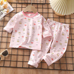 Children's Sleepwear Set Spring Autumn Lycra Cotton Baby Boys Girls Home Clothes Soft Cotton Round Neck Moisture Wicking