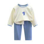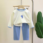 Children's Warmth Innerwear Set Fleece Lined Sleepwear Round Neck Soft Polyester Fabric Cartoon Patterned Underwear For Boys And Girls