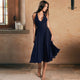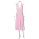 Elegant Backless Splice Pure Color Summer New Dress European Style Street Fashion V-neck Sleeveless A-line Skirt Dress