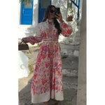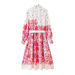 Elegant Floral Print Long Sleeve Dress European Style Women's Fashion Dress Polka Dot Polyester Fabric Charming Gown