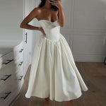 Elegant French Style Backless Slim Fit Pure Color Strapless Long Dress Women's Sexy V-neck No-sleeve Bodycon Gown Autumn Winter New Arrival