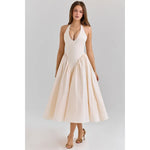 Pattern: Solid Color Occasion: Holiday,Banquet,Daily Fabric Type: Cotton Neckline: Halter Neck Sleeve Length: Sleeveless Sleeve Type: Sleeveless Style: Elegant Season: Summer Fit Type: Slim Dresses Type: Sheath Dress Gender: Women's Weight: 507g