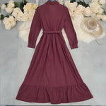 Elegant Vintage Long Sleeve V-Neck Maxi Dress Style Casual Flowing Dress Cotton Linen Spandex Material