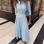 Fashionable Long Shirt Dress Style Elegant Pure Color Polyester Ultra Wide Skirt Dress With Regular Sleeves