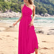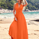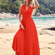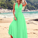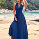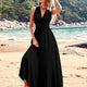 French Style Sexy Long Beach Dress Large Swing Multi-Way Wear Backless Elegant Evening Gown Pure Color Knitted V-Neck Sleeveless
