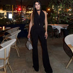 Sexy Backless Slim Fit One Piece Pants For Women New Autumn Pure Color Hanging Neck Bow Tie European Style Street Fashion High Elasticity