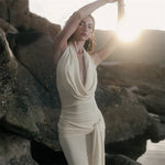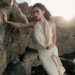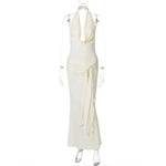 Sexy Long Strapless Splice Dress Fashionable Elegant Backless Gown With Bow Detail Full Body Skimming Wrap Around Silhouette