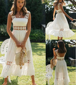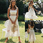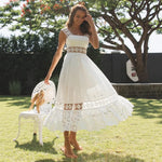 Spring Summer Women's Fashion Long Lace Splice Maxi Dress European Style Elegant Commute Style Sleeveless Gored Skirt Dress
