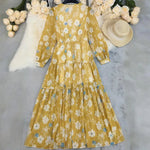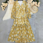 Pattern: Flower Occasion: Holiday,Daily Fabric Type: Spandex,Polyester Neckline: V Neck Sleeve Length: Long Sleeve Sleeve Type: Bishop Sleeve Style: Elegant Season: Summer Fit Type: Regular Fit Dresses Type: Swing Dress Gender: Women's Weight: 572g
