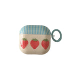 Blue Striped Strawberry Design Wireless Apple AirPods Pro Case Protective Cover Compatible With 3rd Generation AirPods