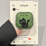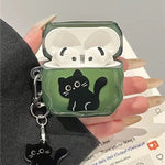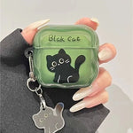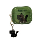 Cartoon Green Small Black Cat Design Protective Case Compatible With AirPods3/4 Apple Earphone Cover For Women TPU Material